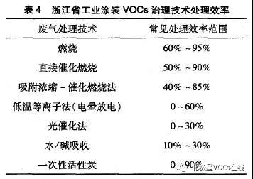 调研发现,VOCs治理技术处理能力差别较大,见表4。